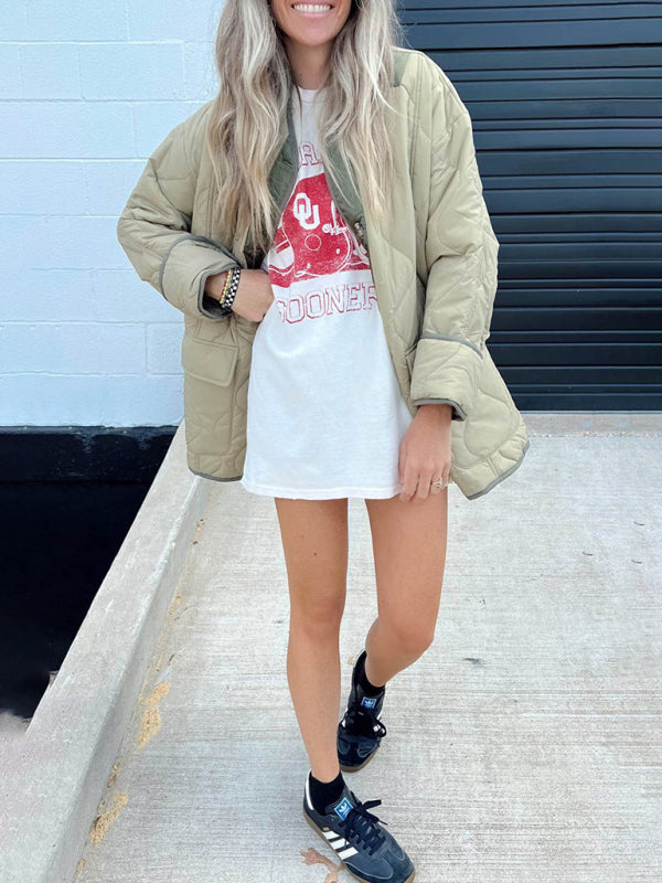 ابقَ أنيقًا ومريحًا بسهولة في هذه السترة القطنية المبطنّة بتصميم الكتل اللونية، المصممة للطبقات خلال أيام الخريف والشتاء الباردة. تتميز بشكل الساعة الجذاب وبنية منسوجة خفيفة الوزن، توفر هذه السترة الدفء والراحة في المقاس. يضيف الياقة المستديرة والجيوب المزدوجة الحافة لمسة مصقولة، بينما يضمن قماش البوليستر الناعم راحة طوال اليوم. مثالية للنزهات الكاجوال، مهام عطلة نهاية الأسبوع، أو لقاءات القهوة الدافئة، تتناغم هذه السترة بشكل جميل مع الجينز، الليغينغ، أو التنانير المتوسطة الطول. تصميم الكتل اللونية الكلاسيكي يجعلها قطعة متعددة الاستخدامات في أي خزانة عصرية.