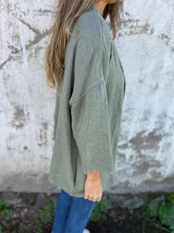 Bez námahy stylový a nekonečně všestranný, tento ležérní kardigan je vaší oblíbenou vrstvou pro přechodné počasí a každodenní nošení. Vyrobený z měkkého tkaného polyesteru, nabízí volný střih s kulatým výstřihem a šikmými kapsami pro větší funkčnost. Design s vlastním texturováním přidává jemné detaily, díky kterým se snadno kombinuje s džínami, legínami nebo šaty. Ať už míříte na brunch, zařizujete pochůzky nebo odpočíváte doma, tato lehká bunda nabízí pohodlí i eleganci v jednom. Navržena pro celoroční nošení, je to perfektní kousek, který snadno pozvedne váš ležérní šatník.