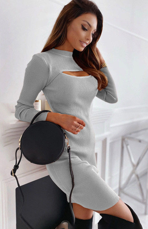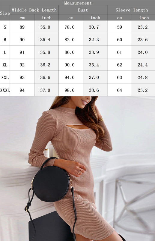 Einfarbiges Damenkleid mit Brustausschnitt – Langarm-Wollstrick