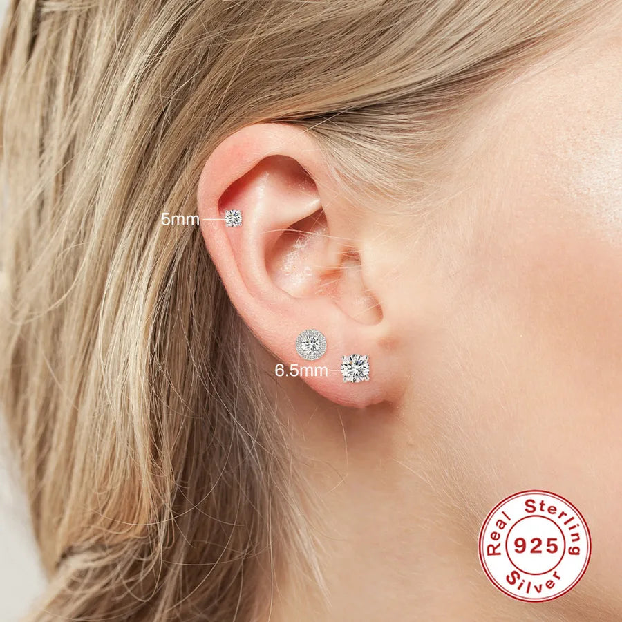Pendientes de botón cuadrados geométricos de plata de ley 925