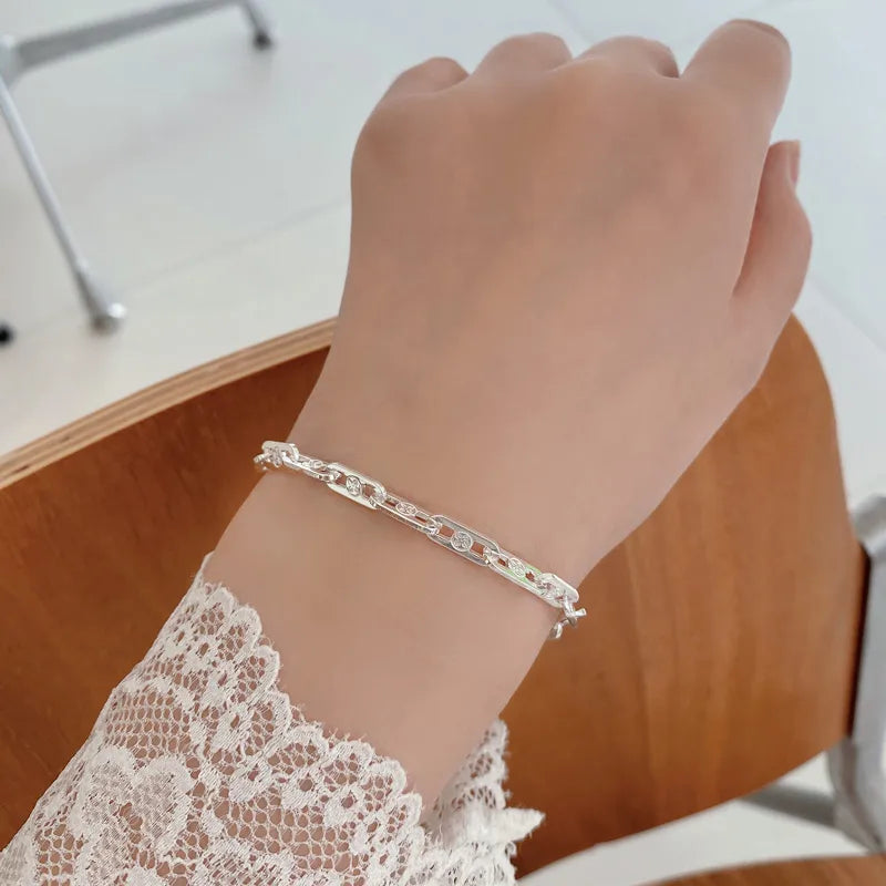 Eleva tu look diario con esta elegante pulsera de cadena cruzada de plata de ley 925, bellamente chapada en oro de 18K para un acabado lujoso. Diseñada para mujeres que aprecian el estilo atemporal, esta pulsera combina simplicidad con sofisticación. Su color sólido y diseño elegante de cadena cruzada la convierten en un accesorio versátil para la oficina, citas o salidas casuales. El cierre de anillo de resorte asegura un ajuste seguro, mientras que el oro electrochapado añade un brillo duradero. Ya sea usada sola o apilada, esta pulsera es una adición imprescindible a cualquier colección de joyas. Ligera, con solo 6g, es perfecta para usar todo el día con un encanto sin esfuerzo.