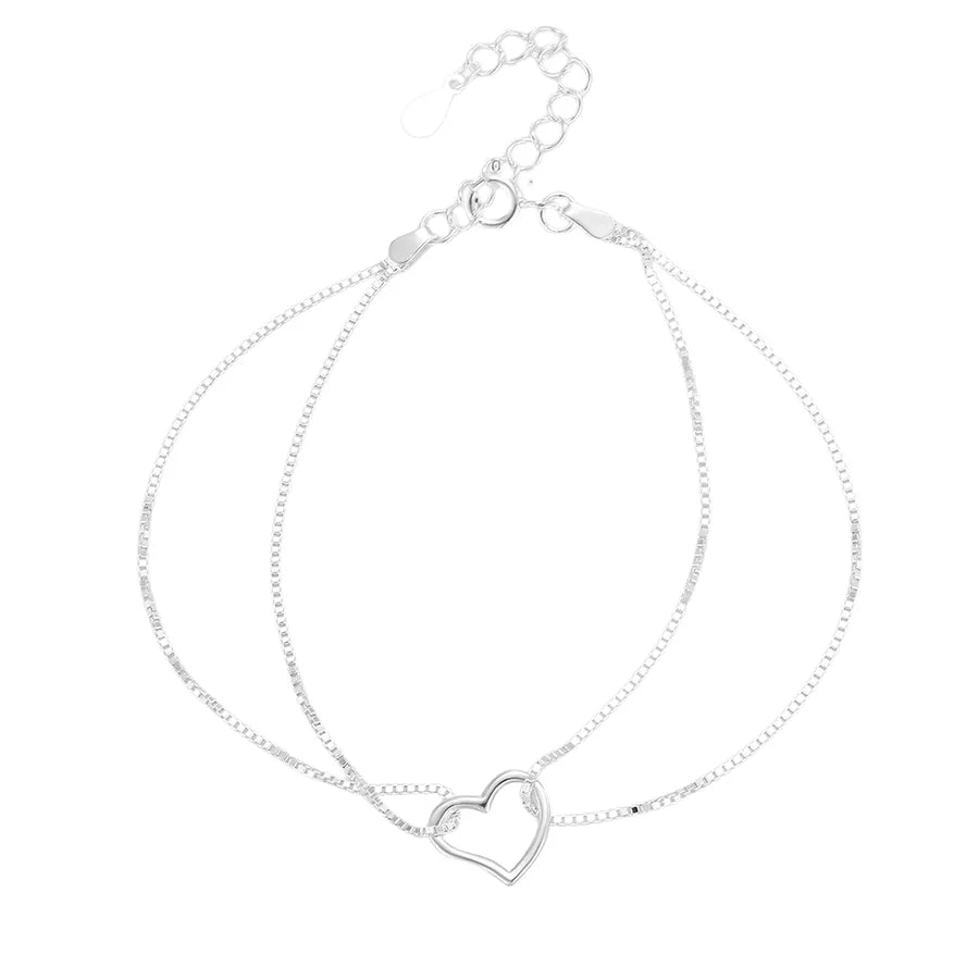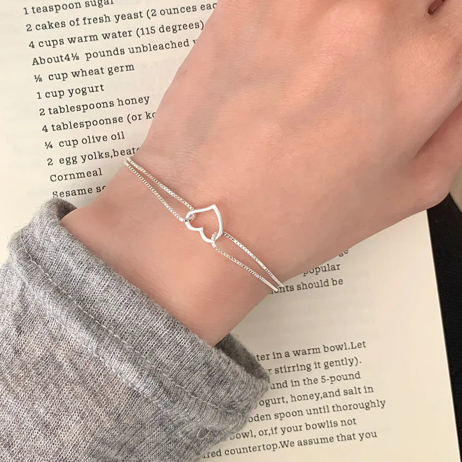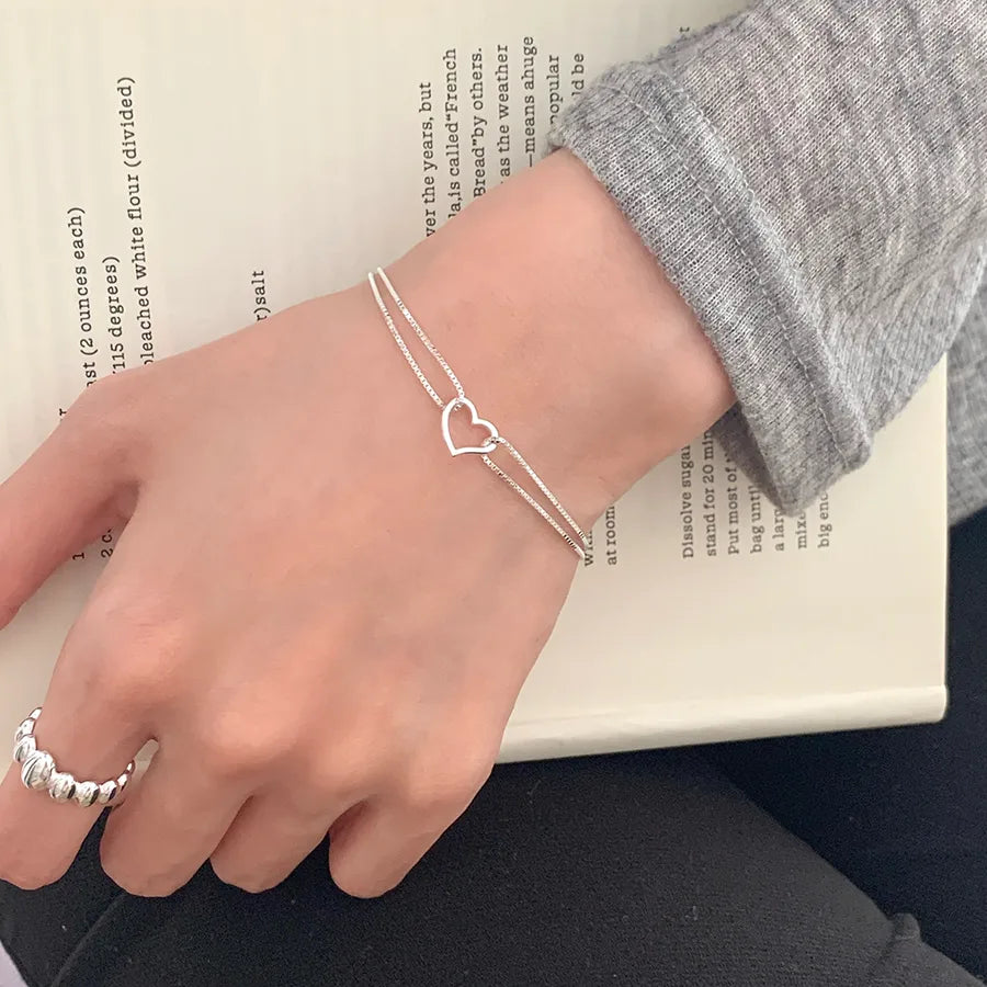 Pulsera de corazón de plata esterlina de doble capa