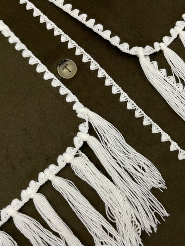 Abrigo de mezcla de lana con cuello de bufanda con flecos