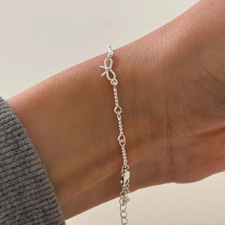 Delicado y elegante, este brazalete de nudo mariposa de plata 925 añade un toque de gracia a cualquier atuendo. Con un diseño de alambre retorcido y un dulce centro de nudo mariposa, combina el estilo moderno de IG con un encanto atemporal. Fabricado con plata de ley de alta calidad y baño de oro blanco, este brazalete es ligero pero duradero. El cierre de langosta garantiza un uso seguro, haciéndolo perfecto para el uso diario o ocasiones especiales. Ya sea que te vistas para unas vacaciones o añadas un brillo sutil a tu look diario, este brazalete es un accesorio versátil y elegante para cualquier amante de las joyas.