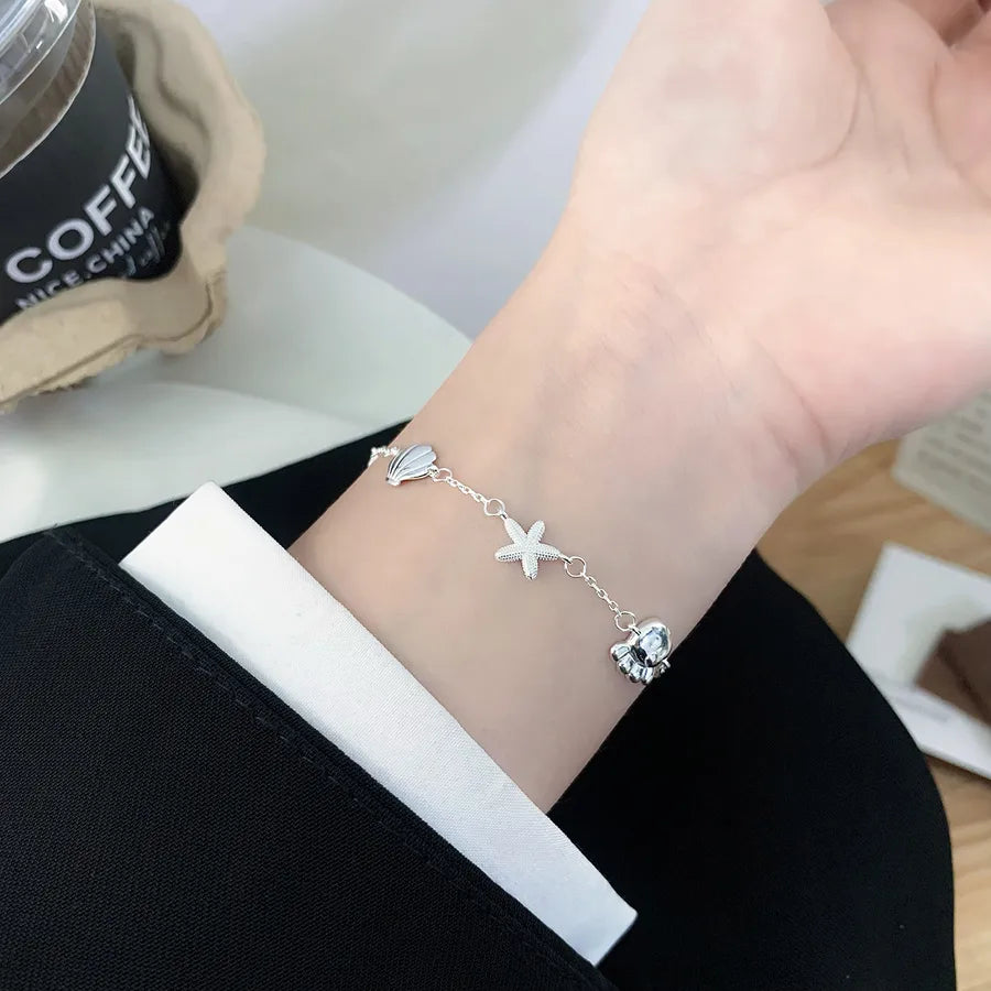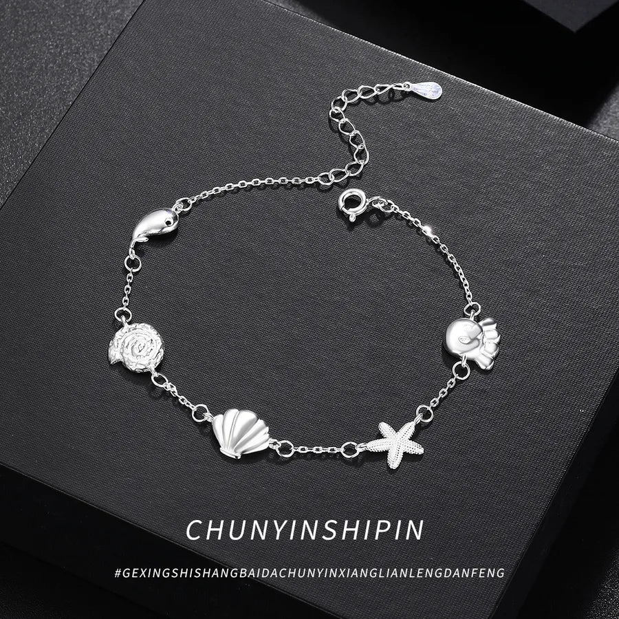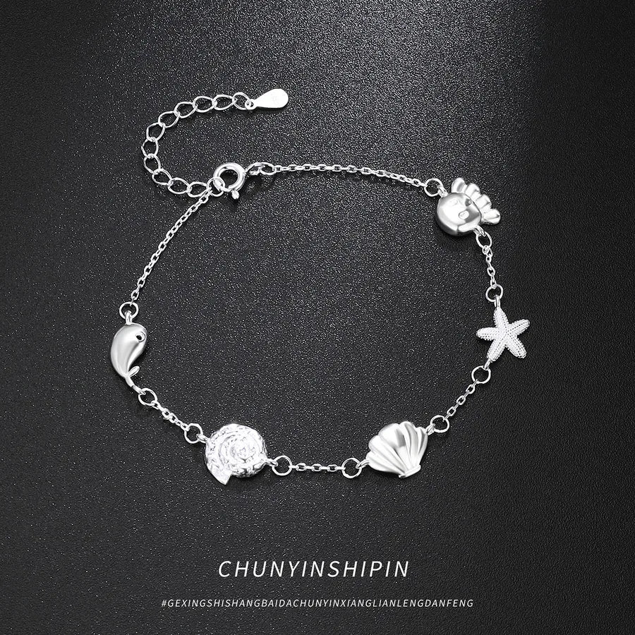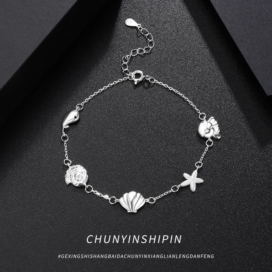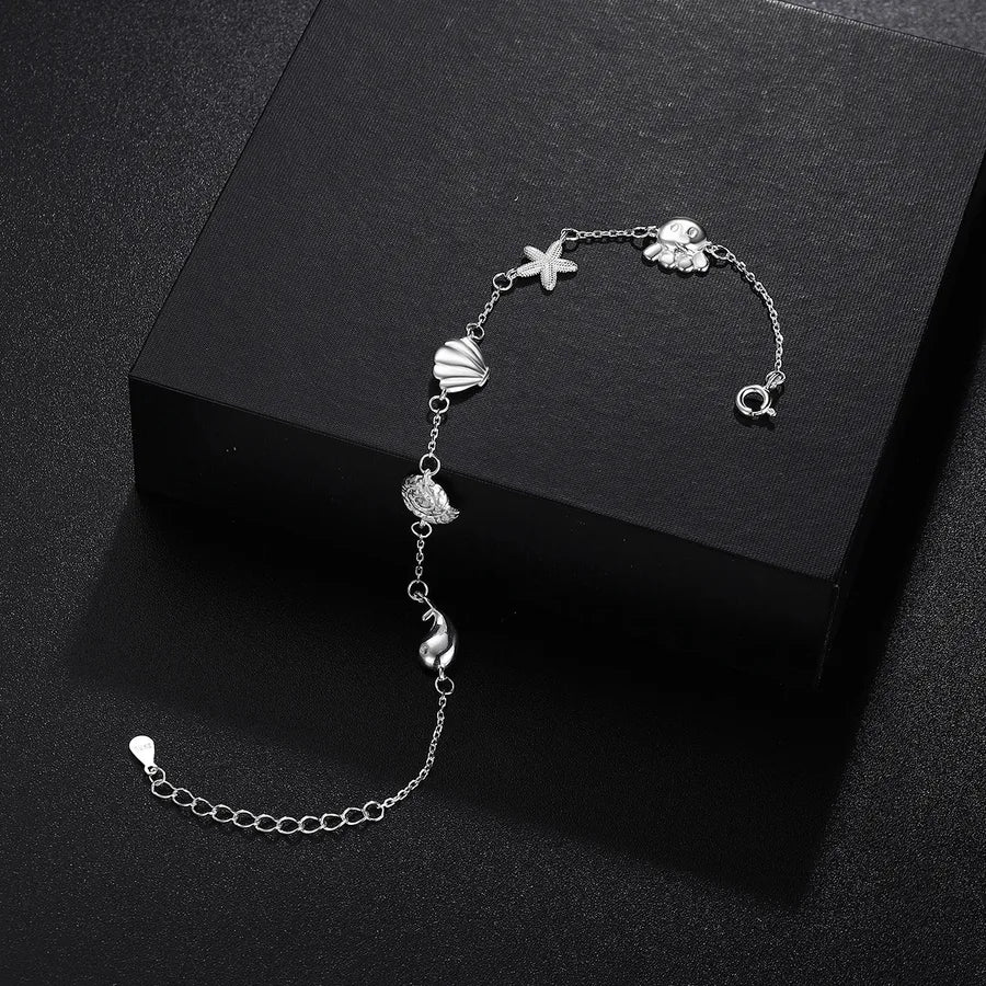 Eleva tu juego de accesorios con esta pulsera de delfín de plata de ley S925, que presenta un delicado diseño de charms de estrella y concha. Elaborada para un atractivo unisex, esta pulsera combina elementos caprichosos inspirados en el océano con una elegancia atemporal. Su construcción ligera de 3g asegura comodidad durante todo el día, mientras que el acabado pulido en plata añade un toque de sofisticación. Ya sea que te vistas formal o informal, esta pieza versátil complementa cualquier atuendo y es un regalo considerado para alguien especial. Perfecta para usar en capas o sola, es una adición imprescindible a cualquier colección de joyas. Expresa tu estilo único con esta encantadora pulsera personalizada.