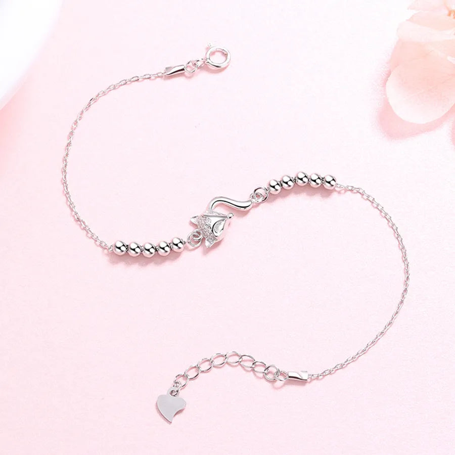 Pulsera de plata esterlina para mujer con charm de zorro