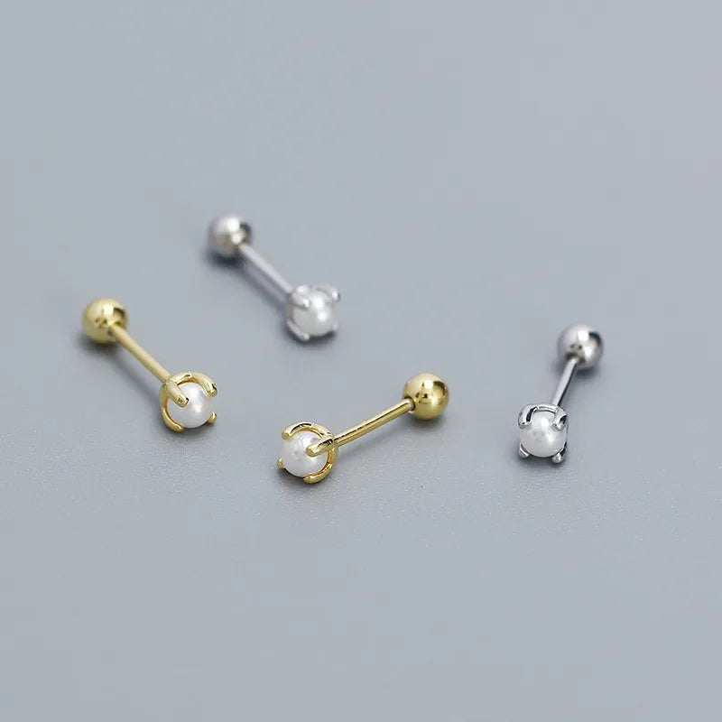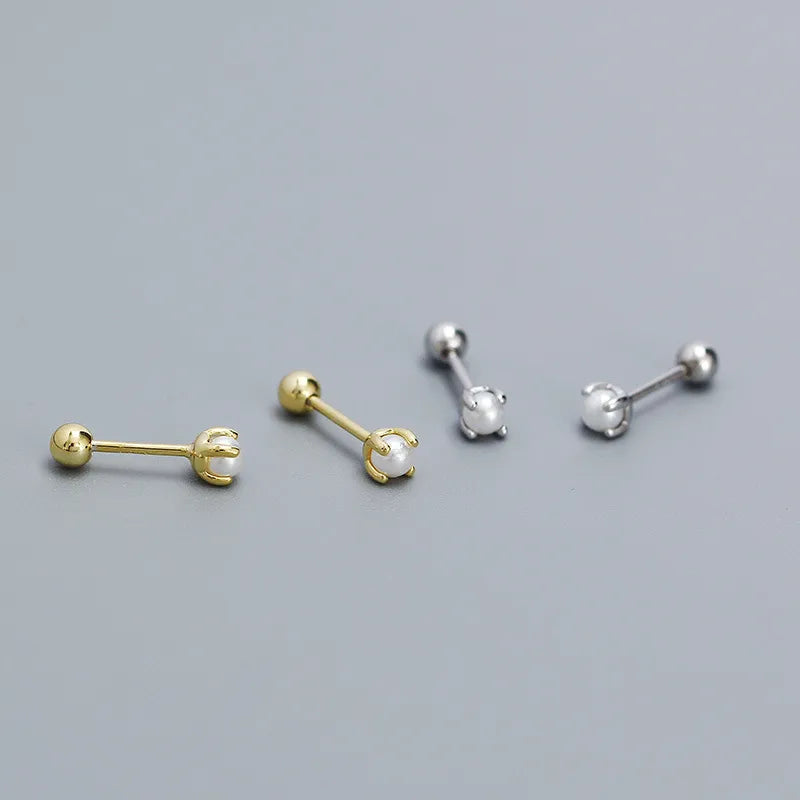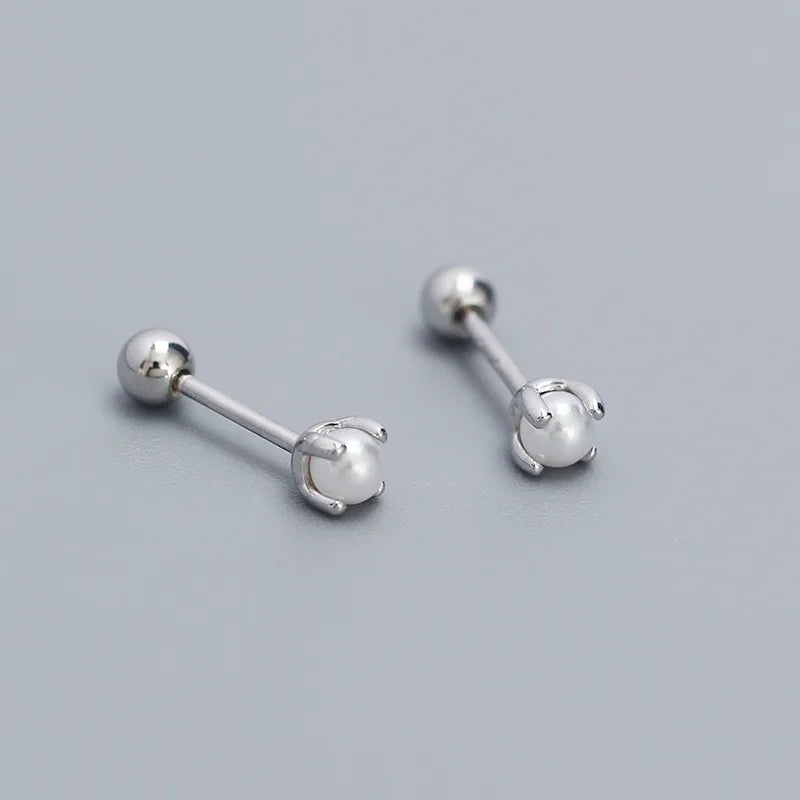 925 Silver Pearl Geometric Stud Earrings