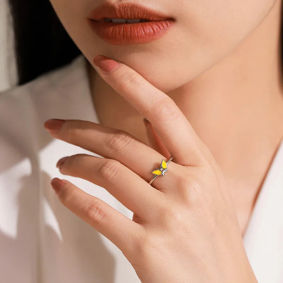 Õrn ja võluv, see 925 hõbedast liblikakujuline vaigu sõrmus lisab igale riietusele veidi võlu. Valmistatud kvaliteetsest 925 hõbedast, on sellel armas liblikamotiiv värvilise emailiga detailidega. Kerge ja mugav, sobib ideaalselt igapäevaseks kandmiseks või mõnusaks kingituseks. Elektroplakeeritud viimistlus tagab püsiva sära, samas kui elegantne ja magus stiil sobib nii vabaaja- kui ka pidulike rõivastega. Olgu see loodusest inspireeritud mood või lihtsalt unikaalsete aksessuaaride armastus, see sõrmus on silmapaistev ese igas ehetekollektsioonis.
