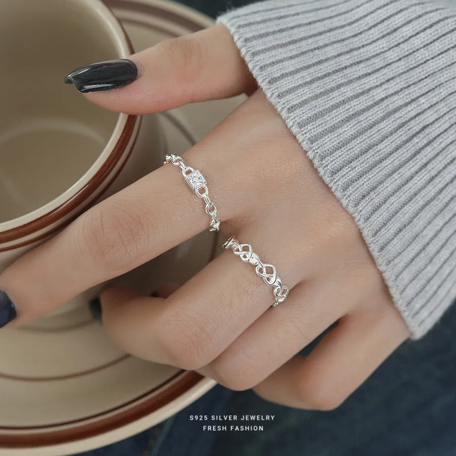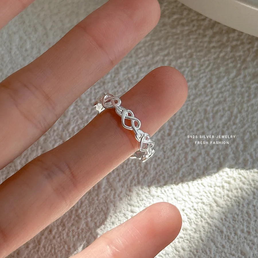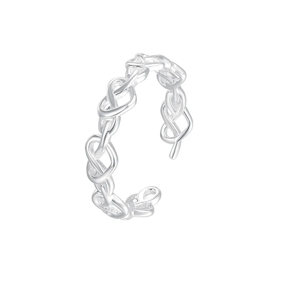 925 hõbedast südame- ja ruudukujuline avatud sõrmus