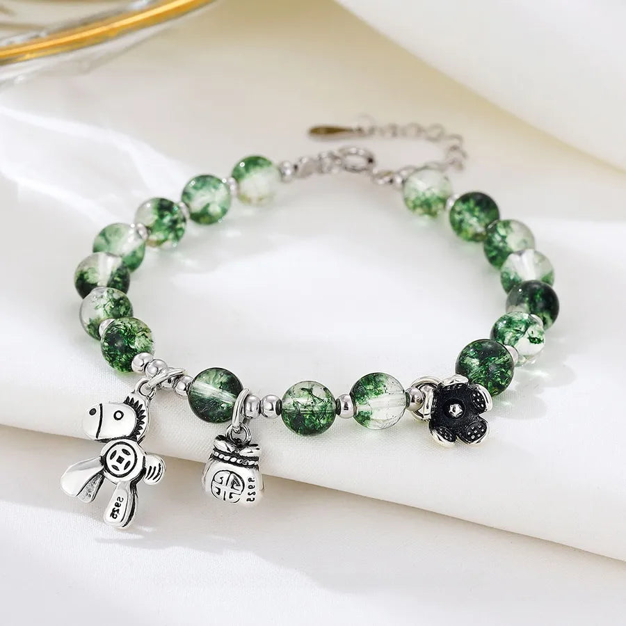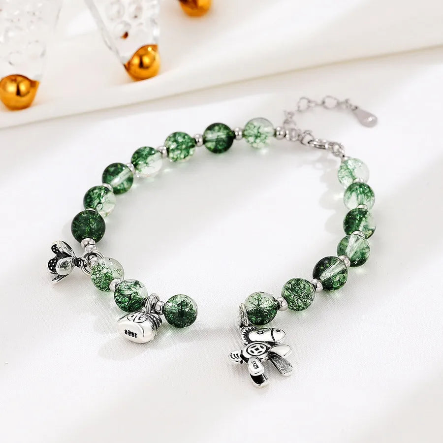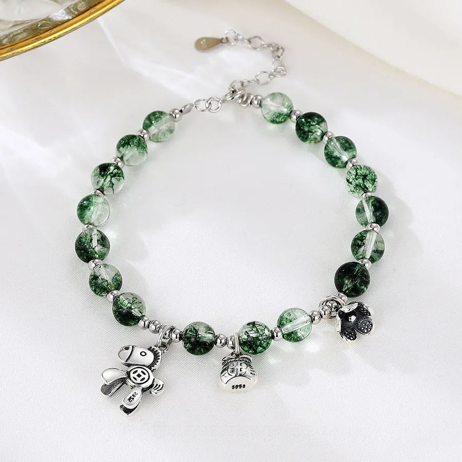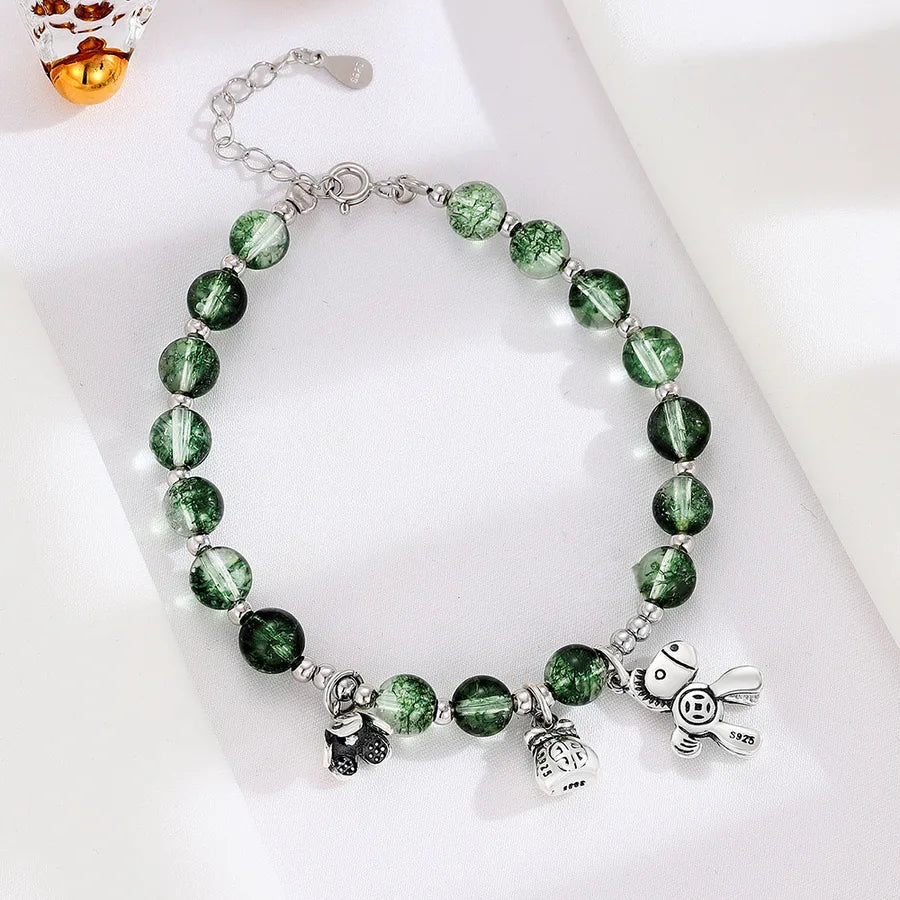 Embrace effortless elegance with this Bohemian Crystal Charm Bracelet, crafted from genuine 925 sterling silver. Featuring a geometric design and a beaded chain, this bracelet blends artistic flair with timeless charm. The inlaid ghost crystal adds a mystical touch, making it a perfect accessory for both casual and formal outfits. Lightweight at just 13g, it offers comfortable wear all day long. Whether you're stacking it with other pieces or wearing it solo, this bracelet brings a hint of luck and sparkle to your wrist. A must-have for any jewelry lover seeking unique style.