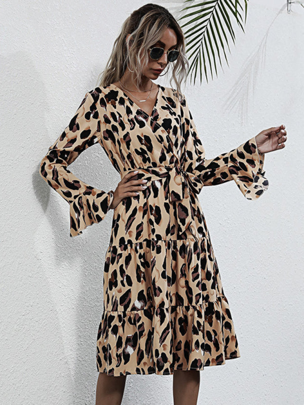 Leopardi mustriga pikkade varrukatega kleit – elegantne lõige, puuvillasegu kangas