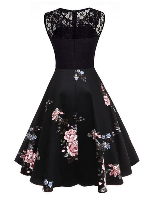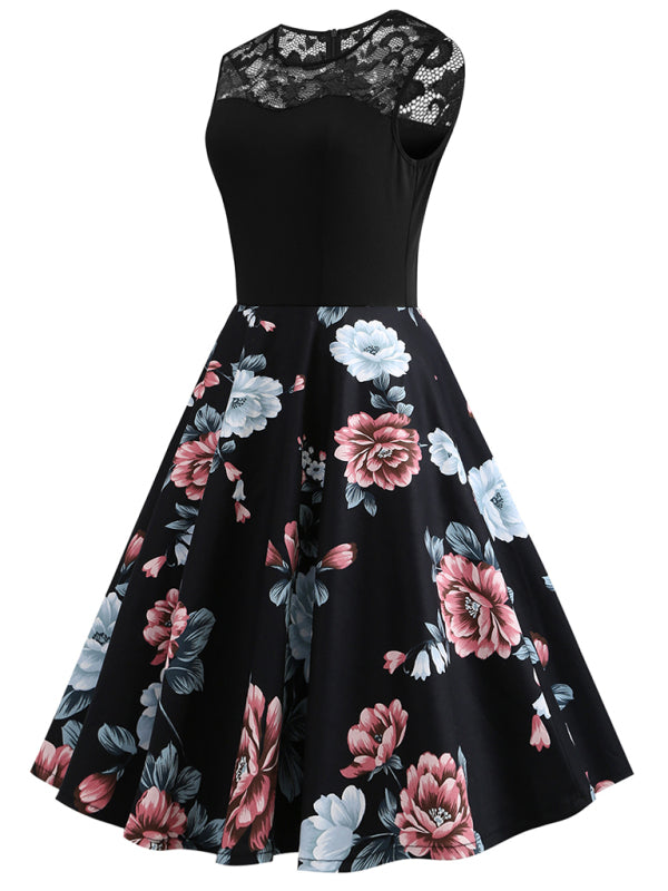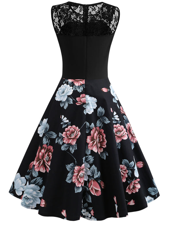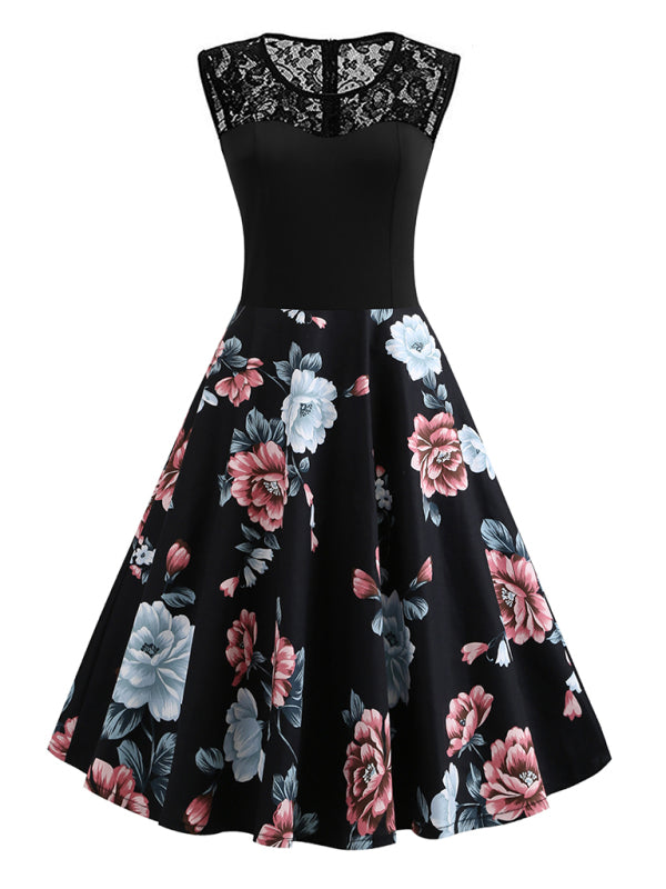 Vintage varrukateta lilleline kleit pitsiõmblusega
