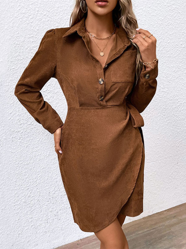 Sametkraega vööga kleit – pika varrukaga, vöökohaga pruunis