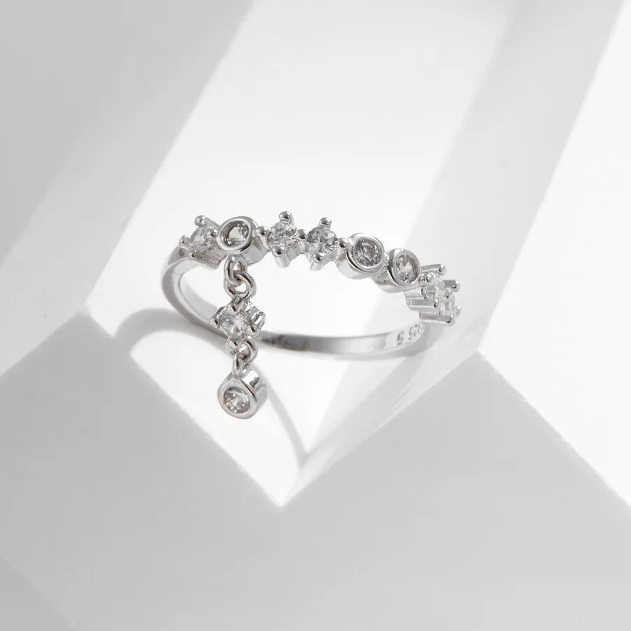 Geomeetriline tsirkoonium sõrmus roodiumiga kaetud hõbedast