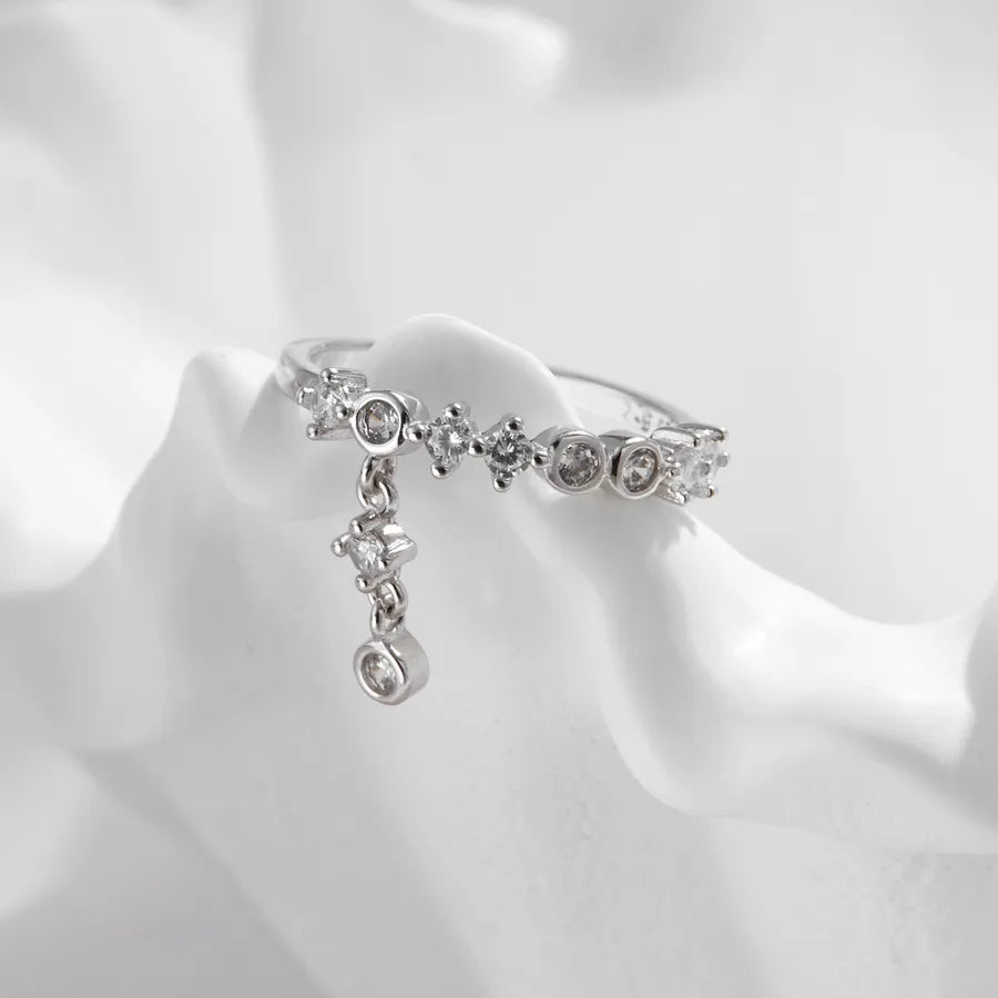 Tõsta oma aksessuaaride mängu selle vapustava geomeetrilise sõrmusega, mis on valmistatud kvaliteetsest 925 hõbedast ja viimistletud särava roodiumkattega. Sile hõbedane toon ja sädelev tsirkoonkivi sissekanne loovad moodsa, pilkupüüdva disaini, mis sobib ideaalselt pidudeks, kohtinguteks või igapäevaseks kandmiseks. Kerge, vaid 5 g, pakub see kogu päeva mugavust ilma stiili ohverdamata. Korea ja IG moetrendidest inspireerituna lisab see sõrmus igale riietusele elegantsi ja sära. Olgu sa siis ostlemas või õhtul välja minemas, see ese on sinu valik vaevatu rafineerituse ja ajatu võlu jaoks.