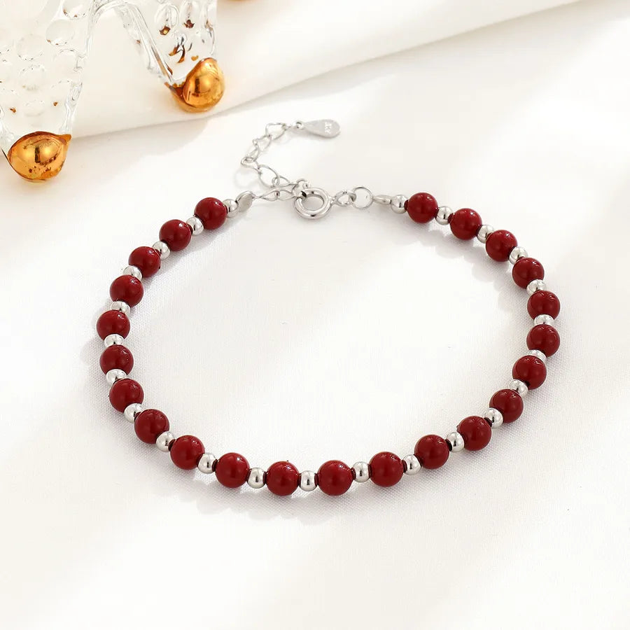 Elevate your everyday style with this elegant sterling silver bracelet featuring radiant red natural stone beads. Designed with a sleek geometric pattern and platinum plating, this bracelet adds a touch of luxury to any outfit. Crafted from high-quality 925 sterling silver and finished with a durable PVD coating, it offers both beauty and longevity. Lightweight and refined, it's perfect for daily wear or special occasions. Whether worn alone or stacked with other pieces, this bracelet is a timeless addition to any jewelry collection. A must-have accessory for the modern, fashion-forward woman.