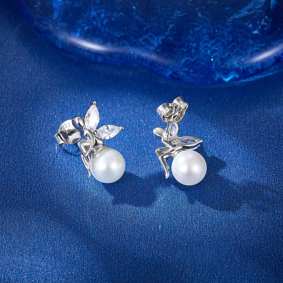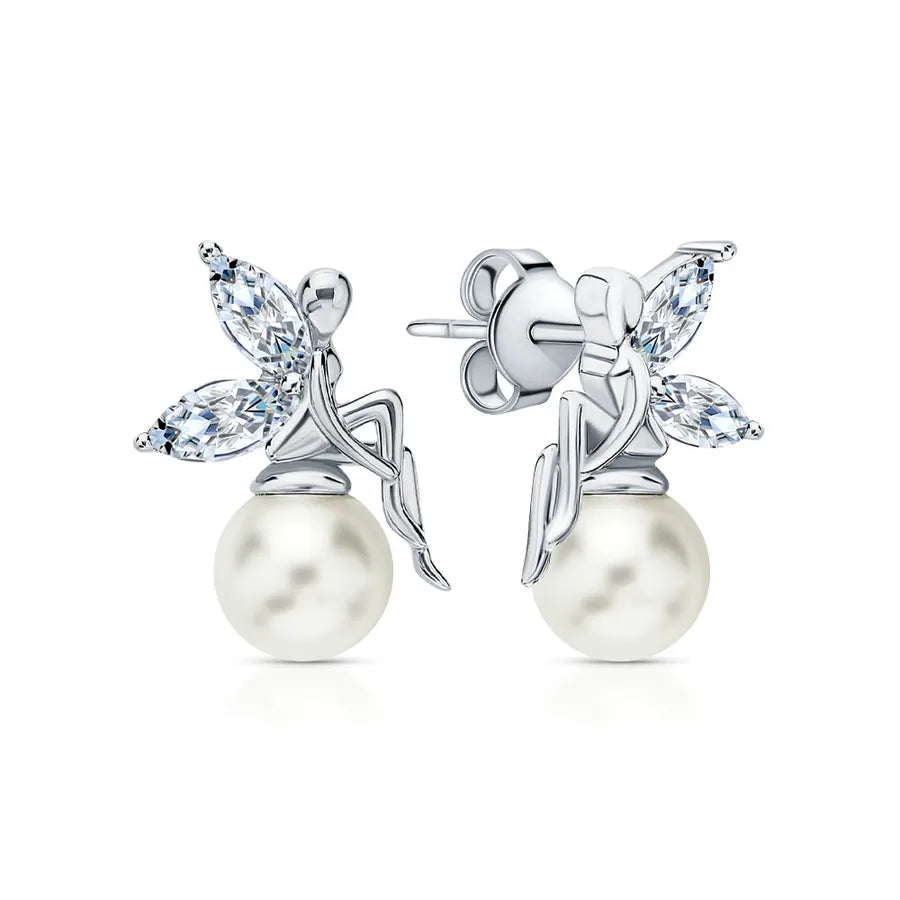 Butterfly Pearl Zircon Sterling Silver Stud Earrings