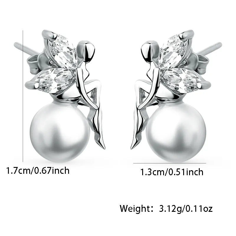 Grace your ears with the delicate charm of these butterfly-shaped stud earrings, crafted from 925 sterling silver and plated in radiant white gold. Adorned with shimmering artificial pearls and sparkling zircon stones, these earrings offer a timeless elegance perfect for daily wear or special occasions. Designed with a secure fit and lightweight feel, they combine sophistication with comfort. Whether you're dressing up for a night out or adding a touch of glam to your everyday look, these earrings are a versatile accessory that enhances any outfit with effortless beauty and refined detail.