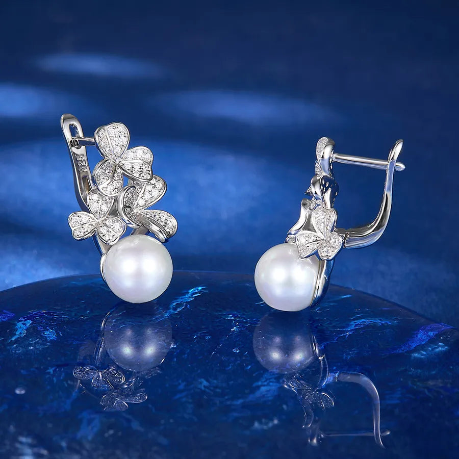 Elevate your everyday elegance with these stunning White Gold Plated Pearl Flower Drop Earrings. Crafted from genuine 925 sterling silver, each earring features a delicate floral design adorned with shimmering artificial pearls and sparkling zircon accents. The luxurious white gold plating adds a radiant finish, making them perfect for both daily wear and special occasions. Lightweight yet eye-catching, these earrings offer a timeless blend of sophistication and charm. Whether you're dressing up for a holiday event or adding a touch of glamour to your daily outfit, these earrings are a must-have accessory.