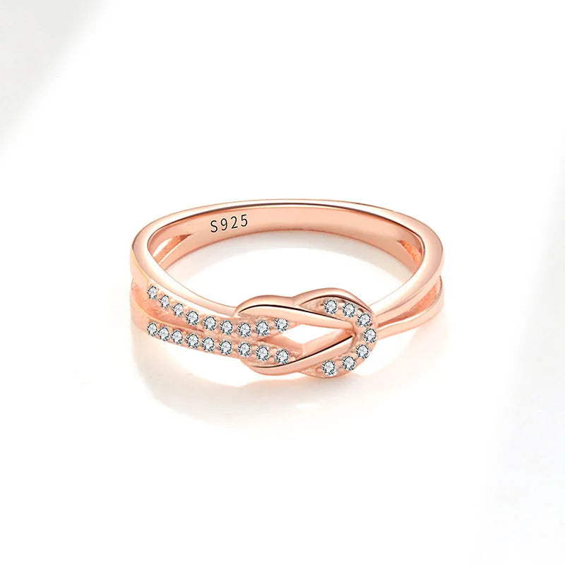 Elevate your everyday style with this elegant 18K gold plated knot ring crafted from premium 925 sterling silver. Featuring a delicate inlay of sparkling zircon stones, this ring combines timeless design with modern charm. Its lightweight 2g construction makes it perfect for daily wear, while the symbolic knot pattern adds a meaningful touch. Designed for women who appreciate subtle sophistication, this ring complements any outfit and suits all seasons. Whether you're dressing up for a special occasion or adding a hint of glamour to your casual look, this ring is a must-have accessory.