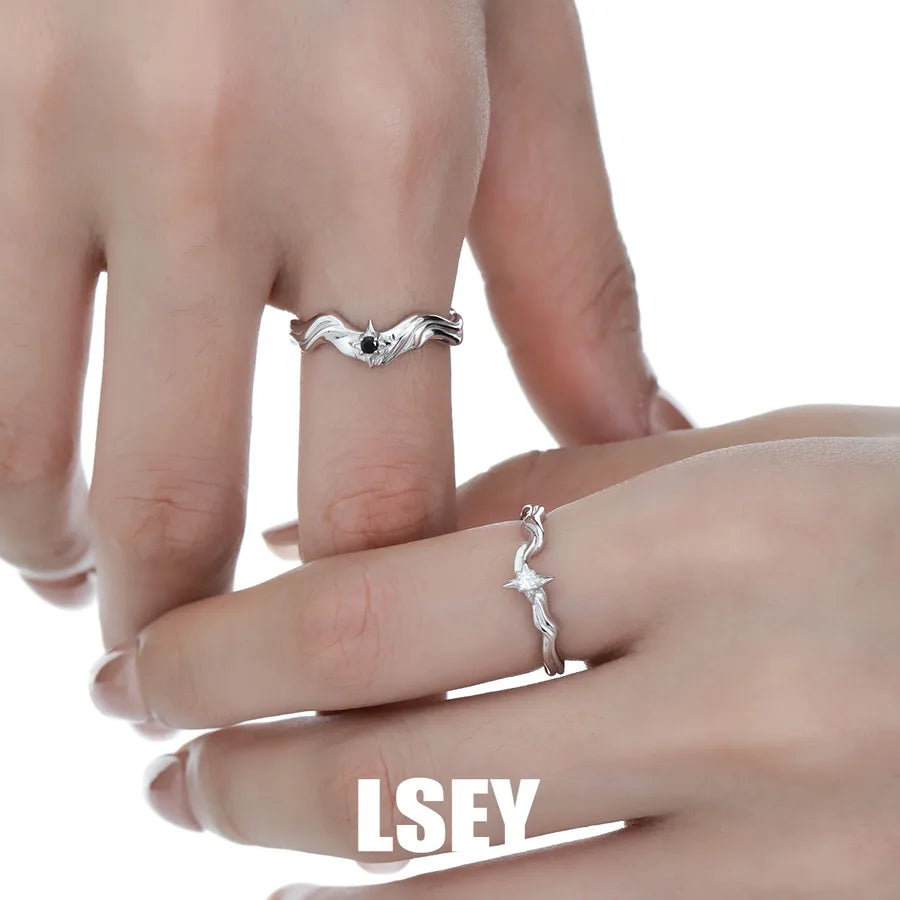 Celebrate your unique bond with these Sterling Silver Star Couple Rings, crafted from premium 925 silver and adorned with shimmering zircon stones. The elegant star pattern adds a celestial charm, making them perfect for daily wear or special moments. Platinum electroplating enhances durability and shine, while the lightweight 3g design ensures all-day comfort. Designed for couples who value originality and sophistication, these rings offer a timeless symbol of love and connection. Whether you're gifting or treating yourself, these rings bring a high-end, romantic feel to any outfit with their sweet and elegant style.