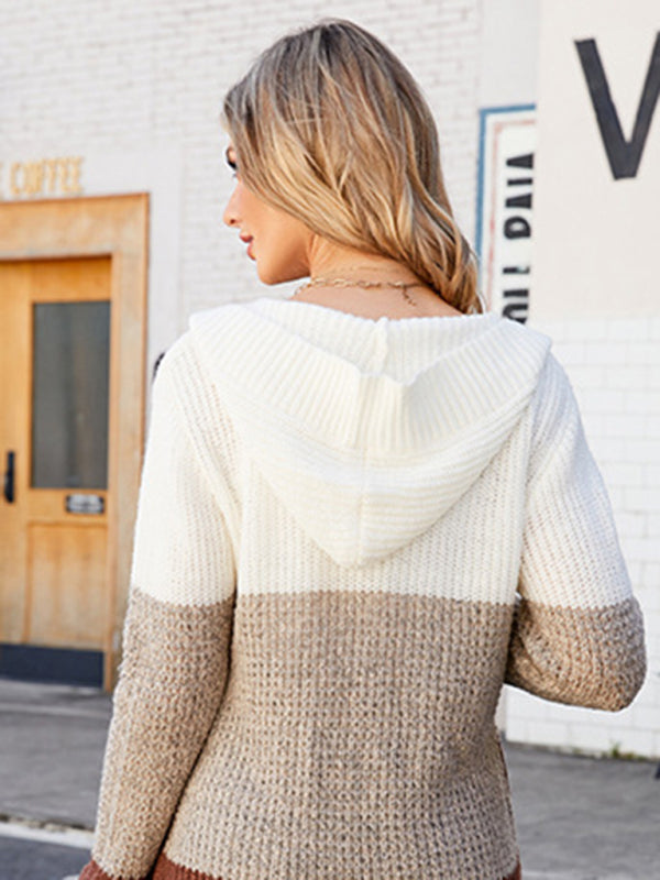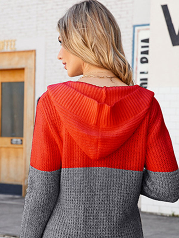 Colorblock Knit Hooded Cardigan – Smiling Maria
