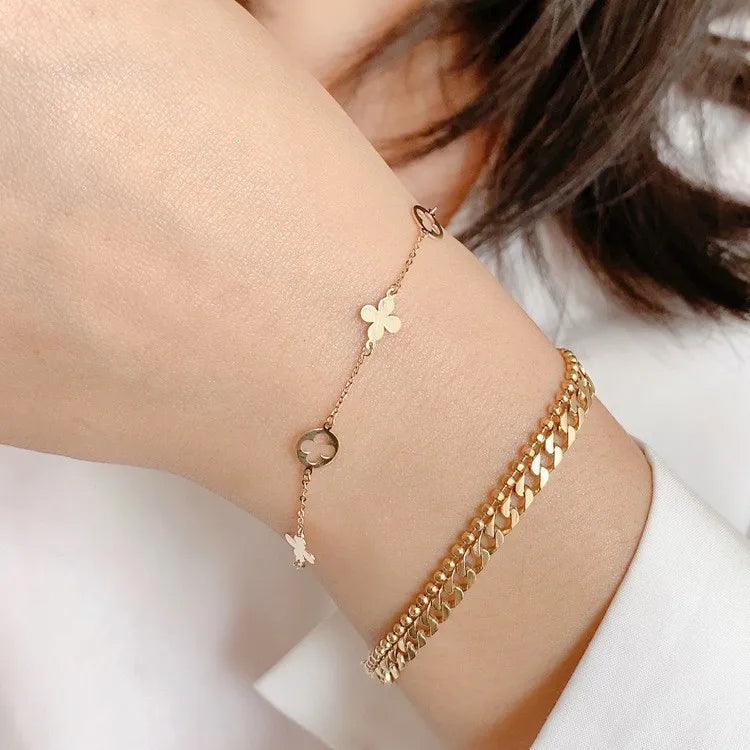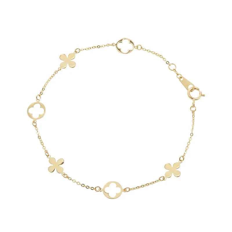 Elevate your everyday elegance with this 18K gold plated sterling silver bracelet, designed for the modern woman who appreciates minimalist luxury. Featuring a delicate four-leaf floral motif, this geometric-inspired piece blends simplicity with sophistication. Crafted from high-quality S925 sterling silver and finished with a radiant gold plating, it offers both durability and timeless charm. Lightweight and comfortable at just 2g, it’s perfect for daily wear or special occasions. Whether worn solo or stacked with other favorites, this bracelet adds a refined touch to any outfit, making it a must-have accessory in your jewelry collection.