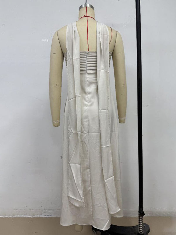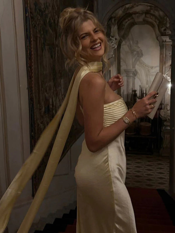 Satin Lace-Up Tube Dress – Woven Midi Dress for Spring & Summer