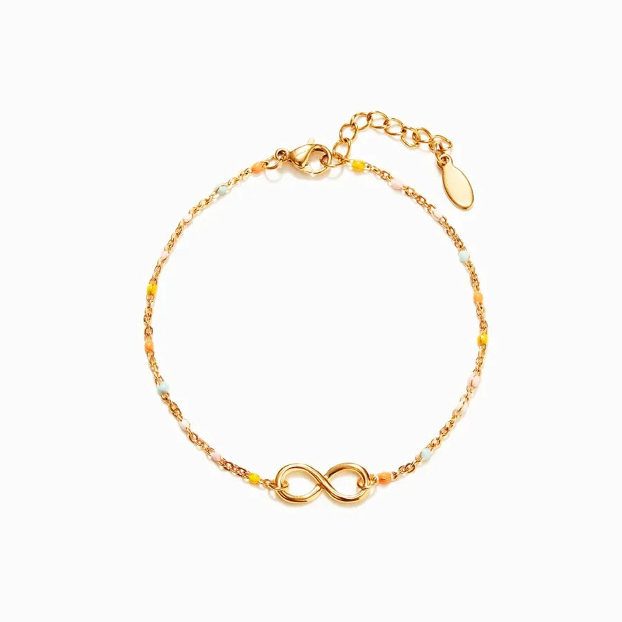Elevate your everyday look with this elegant Sterling Silver Infinity Bracelet, designed for women who appreciate timeless style with a modern twist. Crafted from high-quality 925 sterling silver and finished with vibrant epoxy enamel, this bracelet features a geometric infinity pattern symbolizing luck and eternity. Its lightweight design and colorful accents make it perfect for daily wear or special occasions. The PVD gold plating ensures lasting shine and durability. Whether worn alone or stacked with other favorites, this bracelet adds a touch of sophistication and charm to any outfit, making it a must-have accessory in your jewelry collection.
