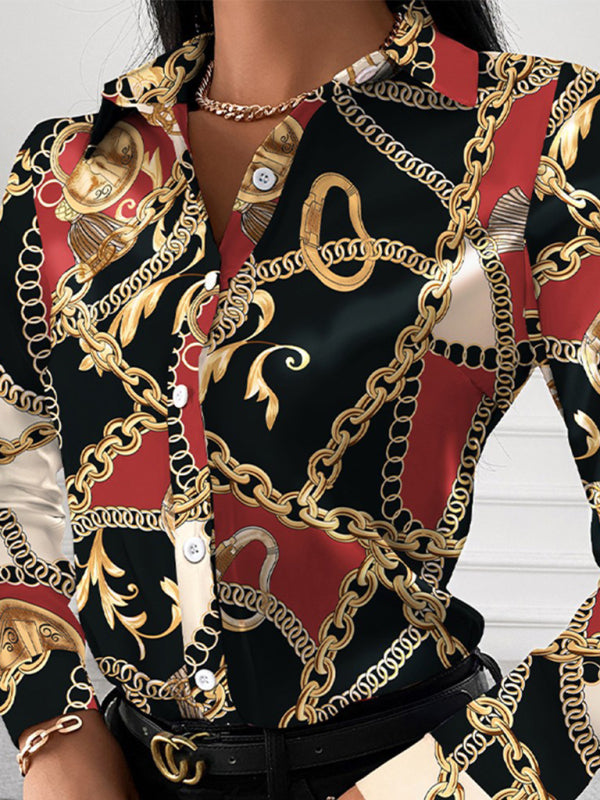 Chemise à manches longues imprimée avec col à revers – Smiling Maria