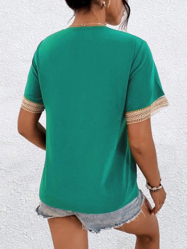Haut à manches courtes en dentelle à col en V – Smiling Maria