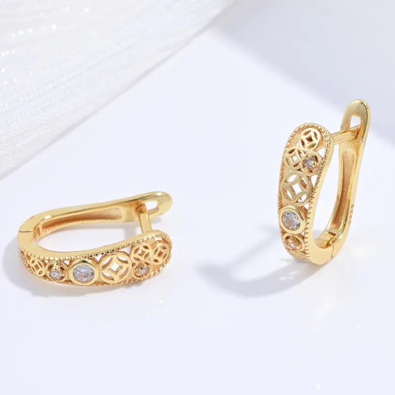 Elevate your accessory game with these elegant U-shaped earrings crafted from premium 925 sterling silver. Featuring a polished finish and adorned with shimmering zircon stones, these earrings are plated in luxurious 22K gold for a timeless retro charm. Designed for women who appreciate classic style with a modern twist, they are perfect for both casual weekends and formal banquets. Lightweight and comfortable, they offer a refined look that complements any outfit. Whether you're dressing up for a special event or adding a touch of sophistication to your everyday wear, these earrings are a must-have addition to your jewelry box.