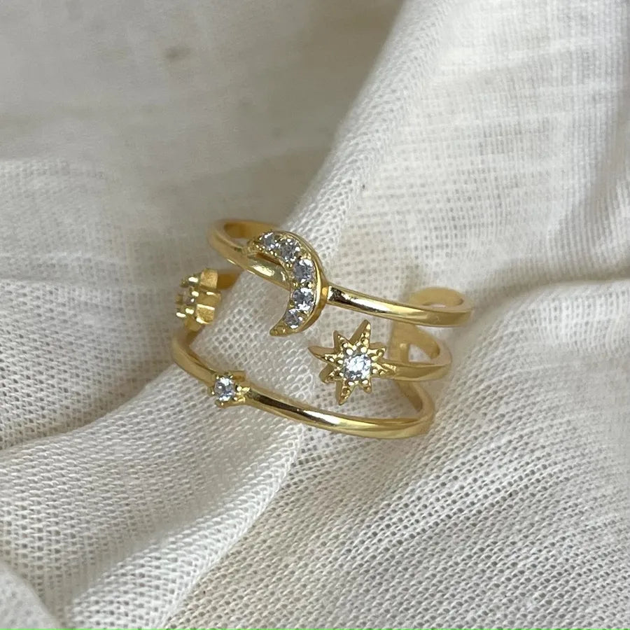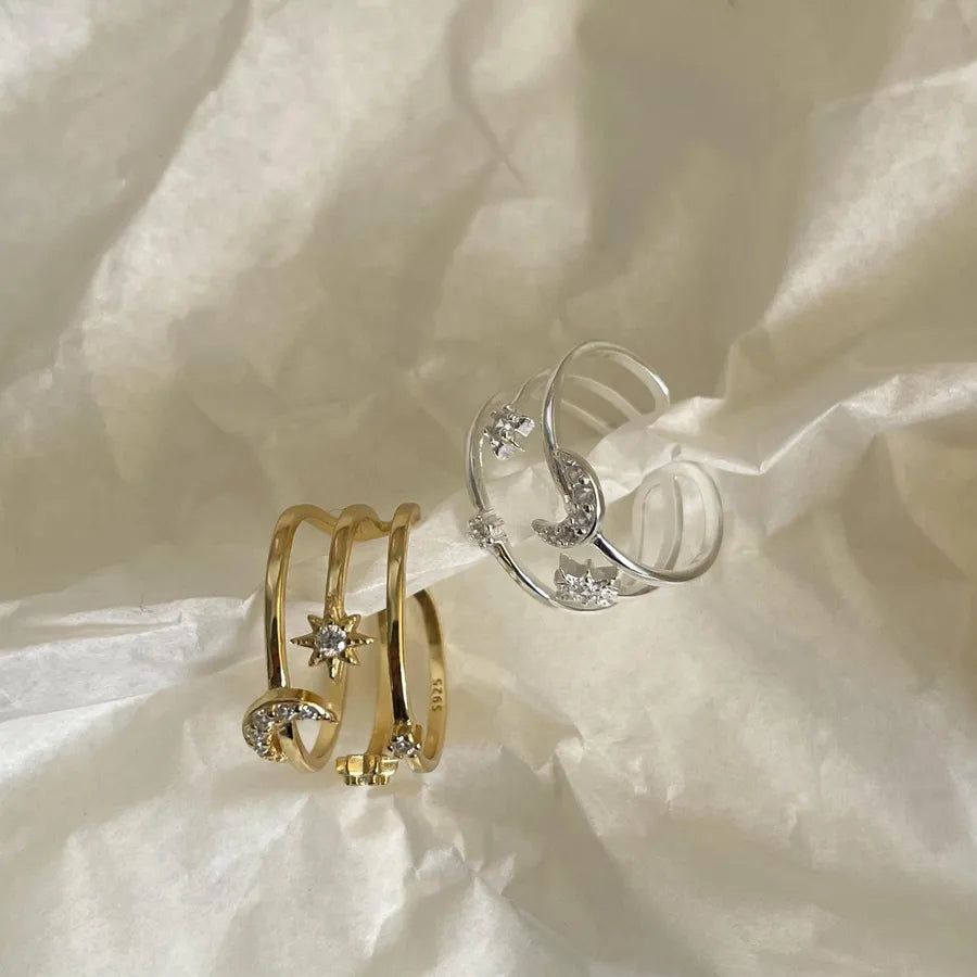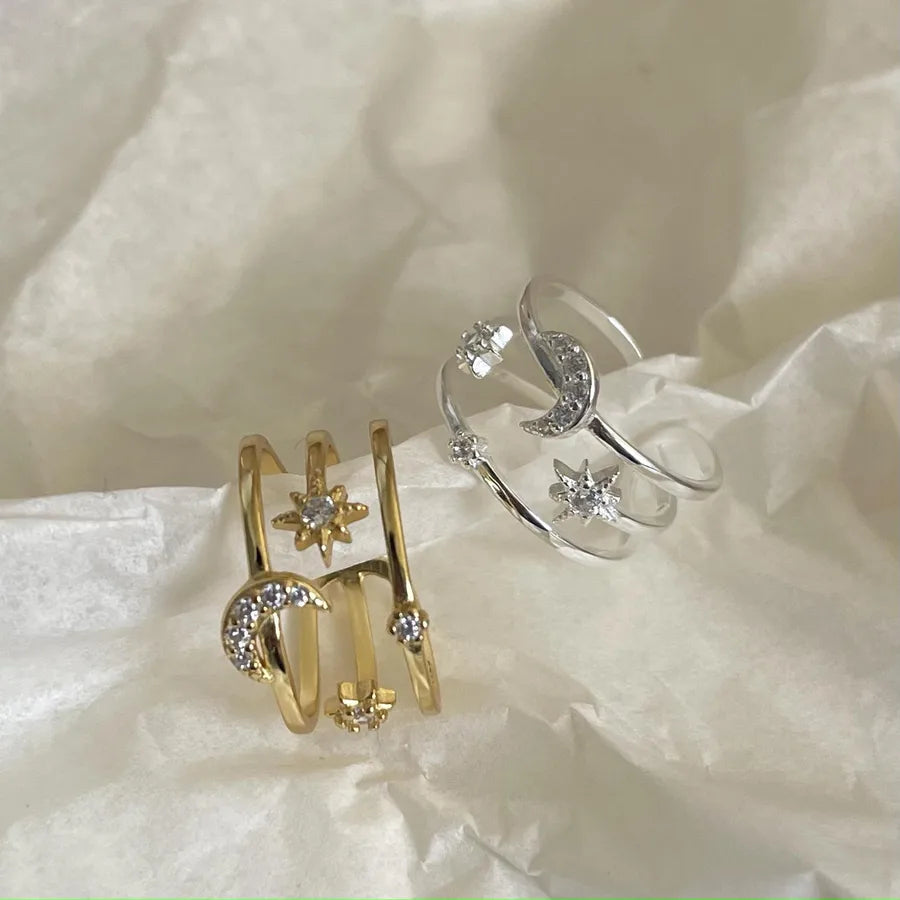 Sterling ezüst Csillag & Hold nyitott gyűrű