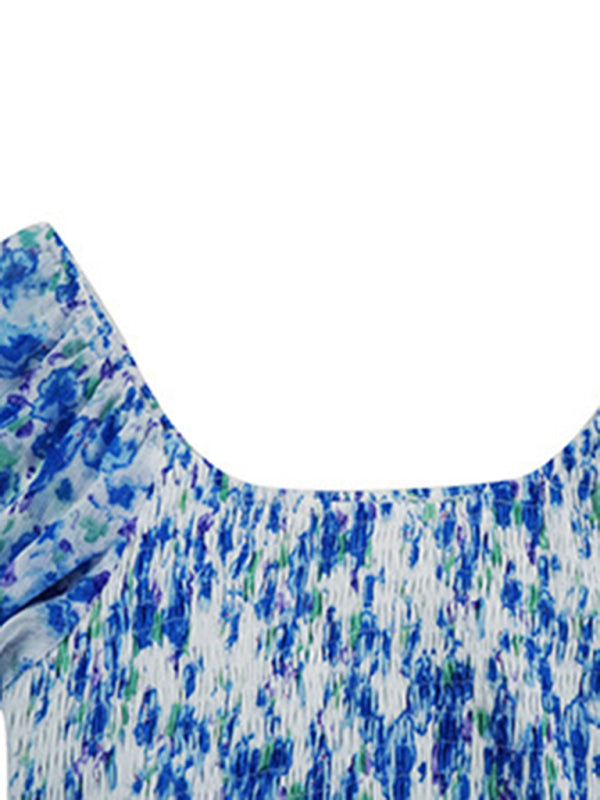 Bohemian Floral Long-Sleeve Square Neck Dress