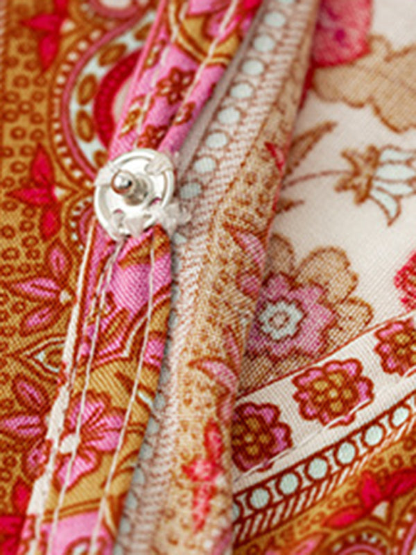 Floral V-Neck A-Line Midi Dress – Light Bohemian Style, Spring-Summer Fit