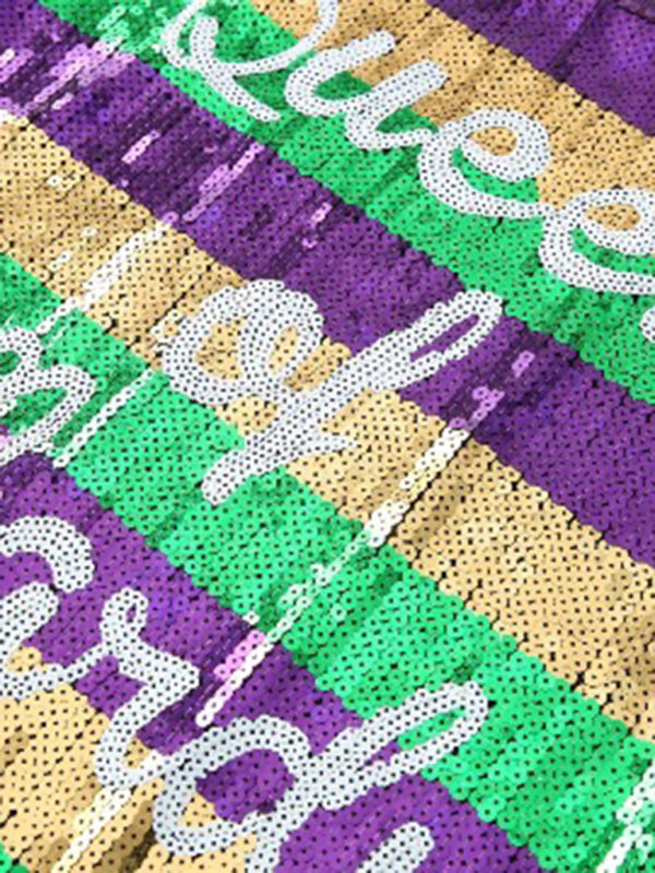 Mid-Length Striped Sequin Letter T-Shirt Dress – Purple Party Wear