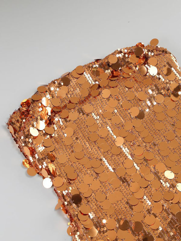 Turn heads at your next event with this dazzling sequin strapless bodycon evening dress. Designed to hug your curves, this hip-hugging silhouette features a shimmering self-design pattern that catches the light from every angle. Crafted from a high-quality polyester and elastane blend, it offers a comfortable fit with slight stretch for ease of movement. Perfect for cocktail parties, formal events, or glamorous nights out, this dress is your go-to for making a bold, confident statement. Pair it with heels and minimal accessories to let the sparkle shine. Elevate your evening wardrobe with this show-stopping piece.