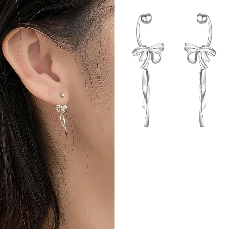 Elevate your everyday elegance with these 925 Sterling Silver Bow Knot Drop Earrings. Designed for women who appreciate simplicity and sophistication, these earrings feature a delicate bow knot motif that adds a charming touch to any outfit. Crafted from high-quality sterling silver, they are lightweight and comfortable enough for daily wear or special occasions like date nights. The drop design offers graceful movement, enhancing your natural beauty with every turn. Whether you're dressing up or keeping it casual, these earrings are the perfect accessory to complete your look with timeless style and subtle sparkle.
