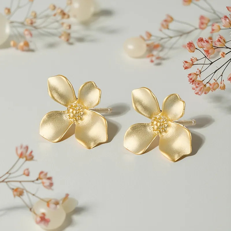Elevate your look with these elegant 925 sterling silver petal stud earrings, designed to add a touch of glamor and romance to any outfit. Featuring a delicate petal pattern and long-lasting gold plating, these earrings are perfect for parties, festivals, honeymoons, or everyday wear. Crafted for women who appreciate timeless beauty, the studs blend simplicity with sophistication. The hypoallergenic sterling silver ensures comfort for all-day wear, while the lightweight 7g design offers effortless style. Whether you're dressing up or down, these earrings make a graceful statement across all seasons and occasions.