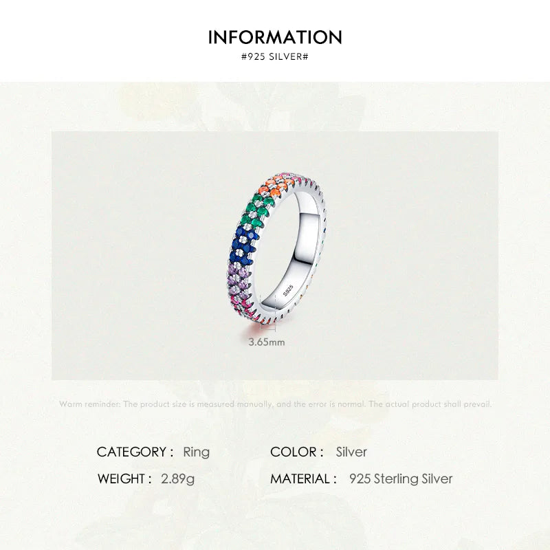 Voeg een levendige toets toe aan je sieradencollectie met deze Rainbow Zircon Ring, vervaardigd uit echt 925 sterling zilver. Met een kleurrijke reeks fonkelende zirkoonstenen is dit romantische stuk rhodium-geplateerd voor blijvende glans en duurzaamheid. Ontworpen voor dagelijks gebruik, maakt het elegante ontwerp en het comfortabele draagcomfort het perfect voor elke gelegenheid. Of je je nu opdoft of casual blijft, deze ring voegt een speelse maar verfijnde flair toe aan je look. Lichtgewicht met slechts 6g, is het ideaal voor vrouwen die houden van tijdloze stijl met een moderne twist.