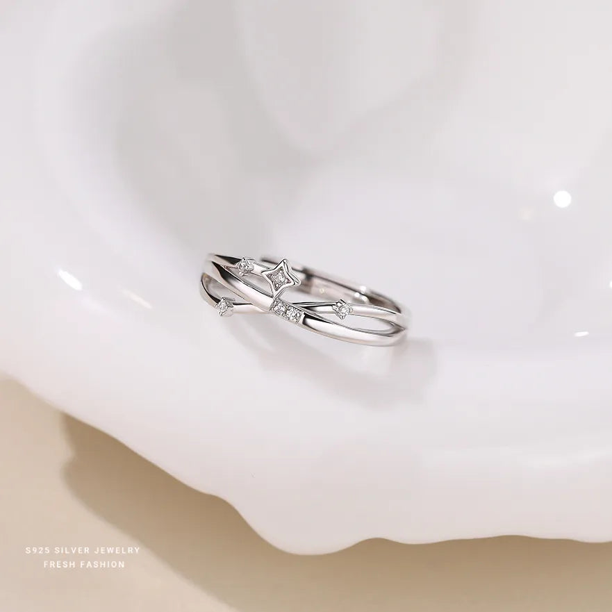 Sterling Zilveren Open Ring met Ster en Zirkoon
