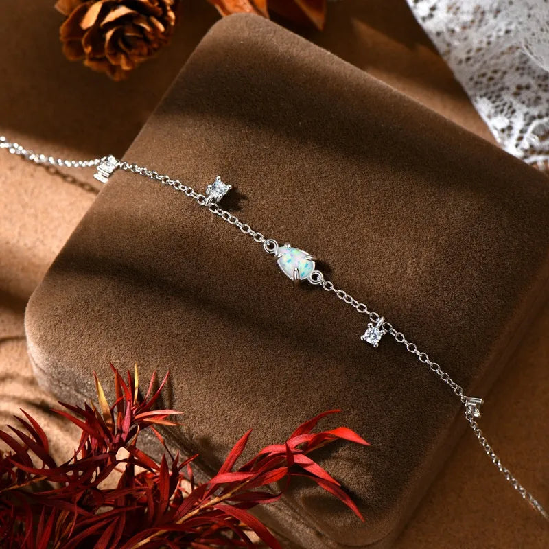 Grace your wrist with timeless elegance wearing this White Opal Waterdrop Bracelet. Crafted from genuine 925 sterling silver and finished with a platinum plating, this bracelet features a delicate pear-shaped opal that shimmers with ethereal beauty. Its minimalist design makes it perfect for daily wear or special occasions, adding a subtle sparkle to any outfit. Lightweight and comfortable, this bracelet is ideal for women who appreciate refined, understated jewelry. Whether worn alone or layered with other pieces, it offers a unique charm that complements both casual and formal styles effortlessly.