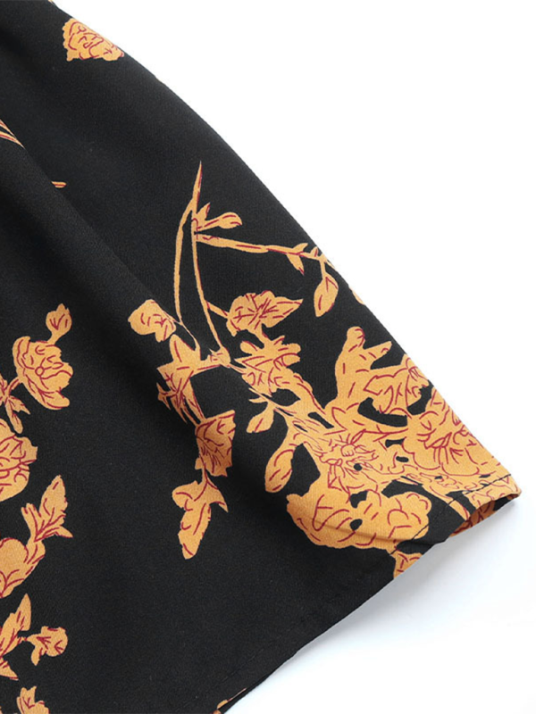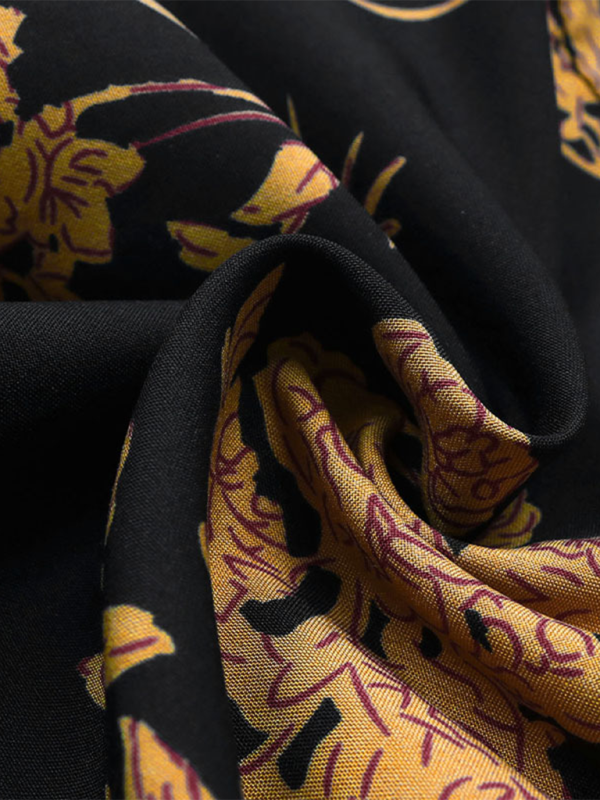 - Color: Black with retro multicolor print
