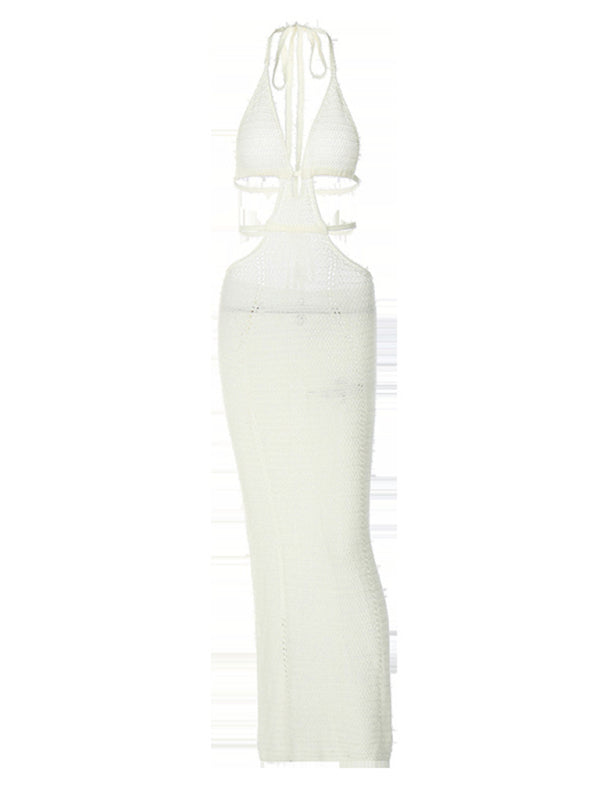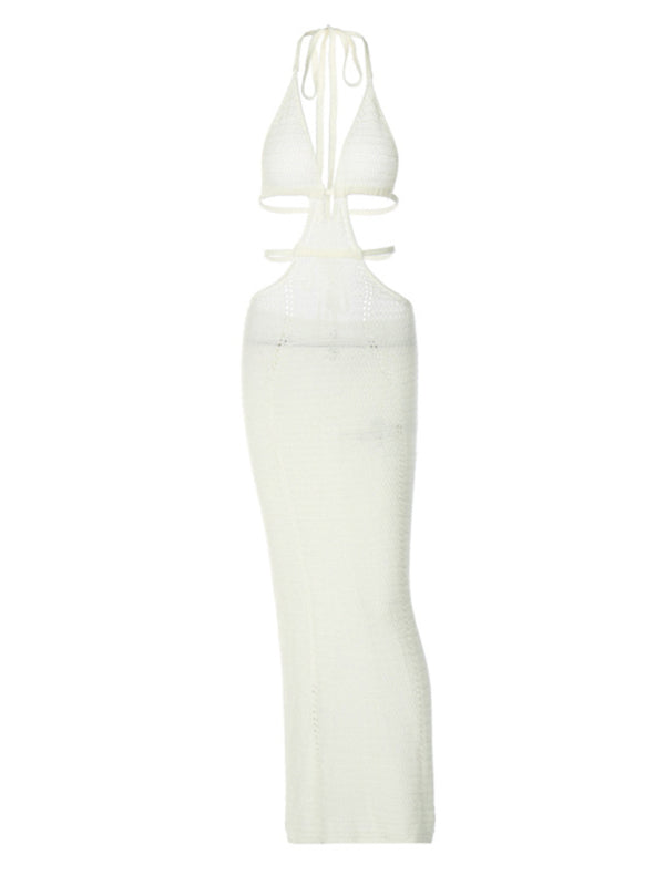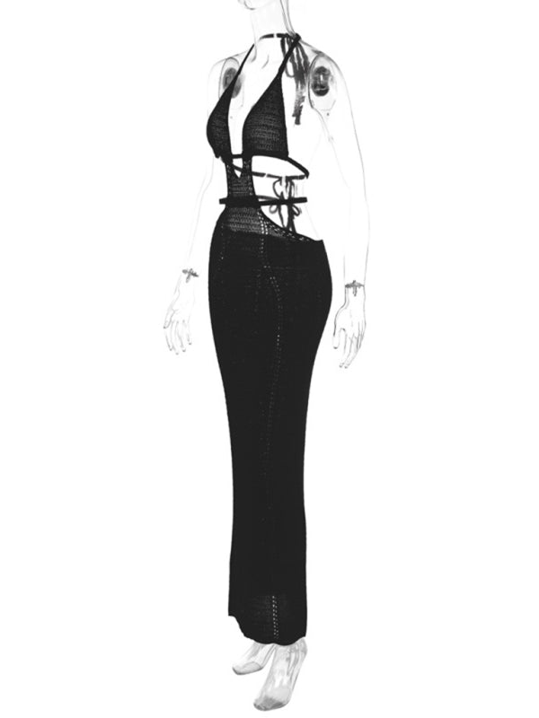 Sexy Halter Neck Lace-Up Midi Dress – Hollow Out Splicing, Slim Fit