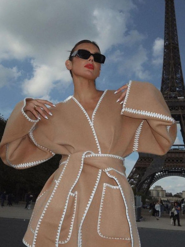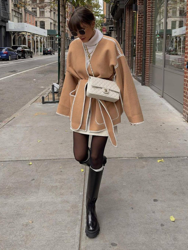 New V-neck lace-up cardigan jacket belt lace design jacket jacket