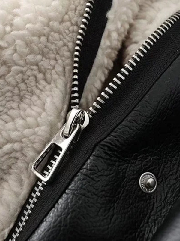 PU fur all-in-one motorcycle suit short temperament high-necked fur coat