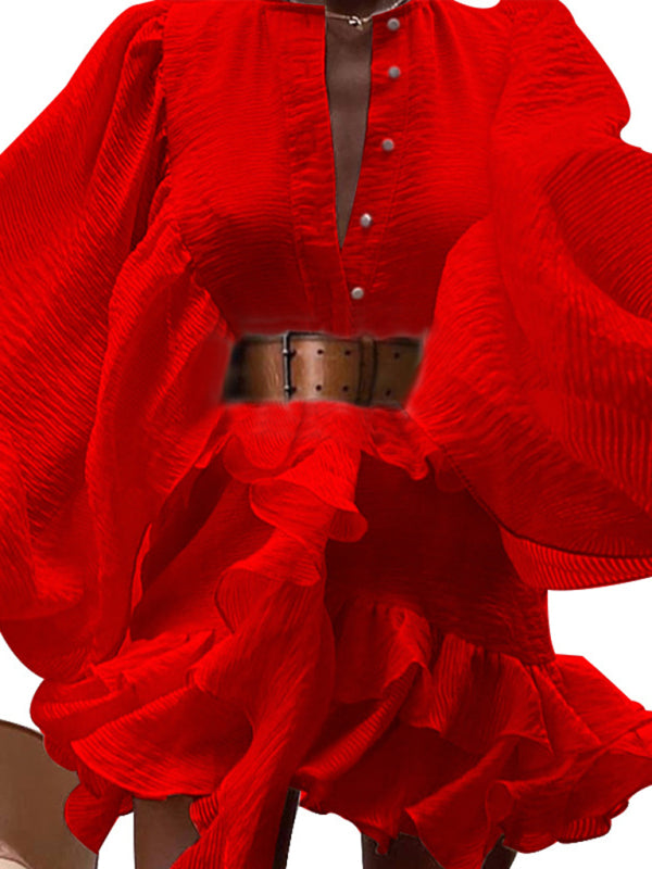 Solid Color French Chiffon Long-Sleeve Dress