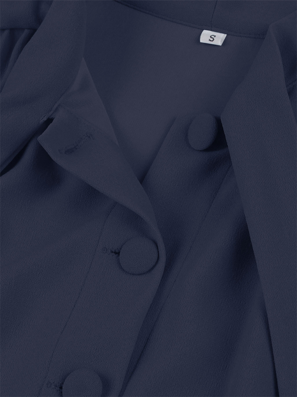 Solid Color Lace-Up Swing Dress – Graceful Midi Style with Stand Collar