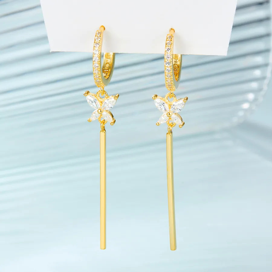 Hev elegansen din med disse 925 sterlingsølv sommerfugl-tassel øredobbene, designet for å tilføre en luksuriøs glans til ethvert antrekk. Med glitrende zirkoninnlegg og et elegant sommerfuglmotiv, er disse øredobbene perfekte for banketter, dater eller festlige anledninger. Den langvarige gull- og hvitgulldekoren sikrer holdbarhet og glans, mens den lette 7g-designen gir komfortabel bruk hele dagen. Laget med presisjon og stil, kombinerer disse øredobbene enkelhet med sofistikasjon, noe som gjør dem til et must-have tilbehør i enhver moderne kvinnes smykkesamling. Legg til et snev av sjarm og glamour til utseendet ditt i dag.