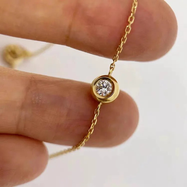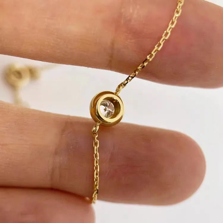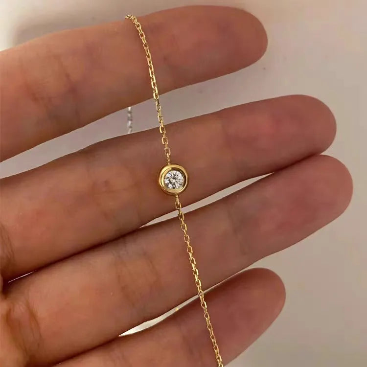 Elevate your everyday elegance with this 18K gold-plated bracelet crafted from premium S925 sterling silver. Designed in a sweet and minimalist geometric style, it features a single sparkling zircon accent that adds a subtle touch of glamour. The lightweight cable chain ensures a comfortable fit, while the secure lobster clasp keeps it in place all day. Ideal for layering or wearing solo, this bracelet complements both casual and dressy looks. Whether you're gifting someone special or treating yourself, this timeless piece brings effortless charm to any jewelry collection.